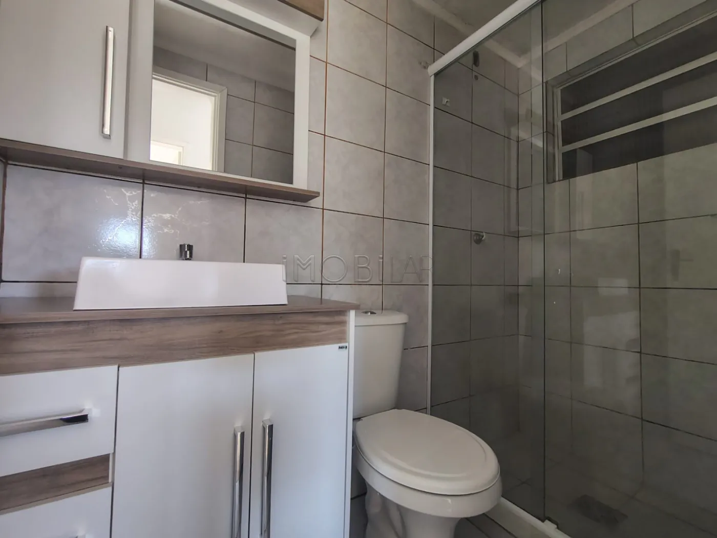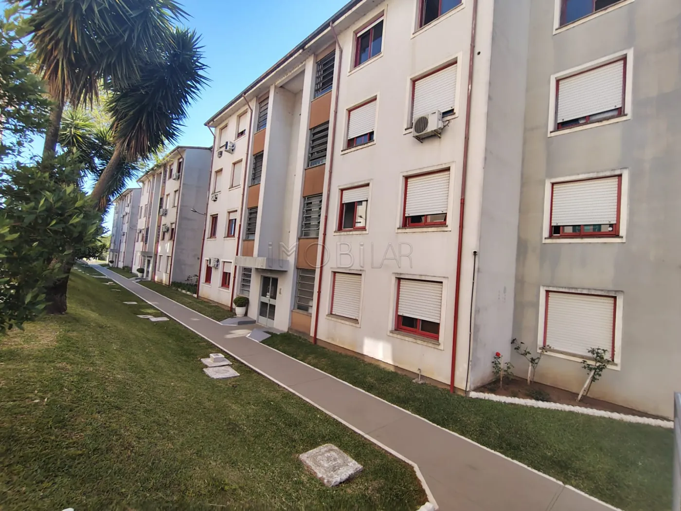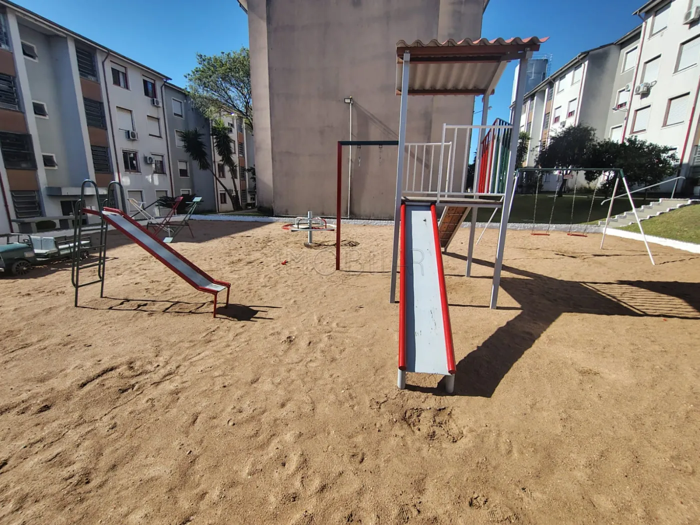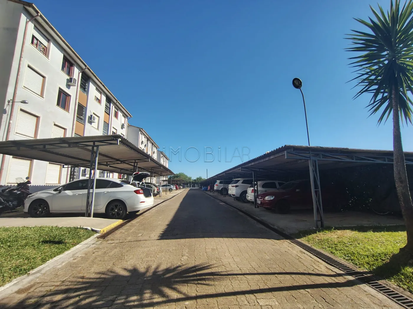 Apartamento com cozinha, sala, dois dormitórios e banheiro. Possui garagem coberta.