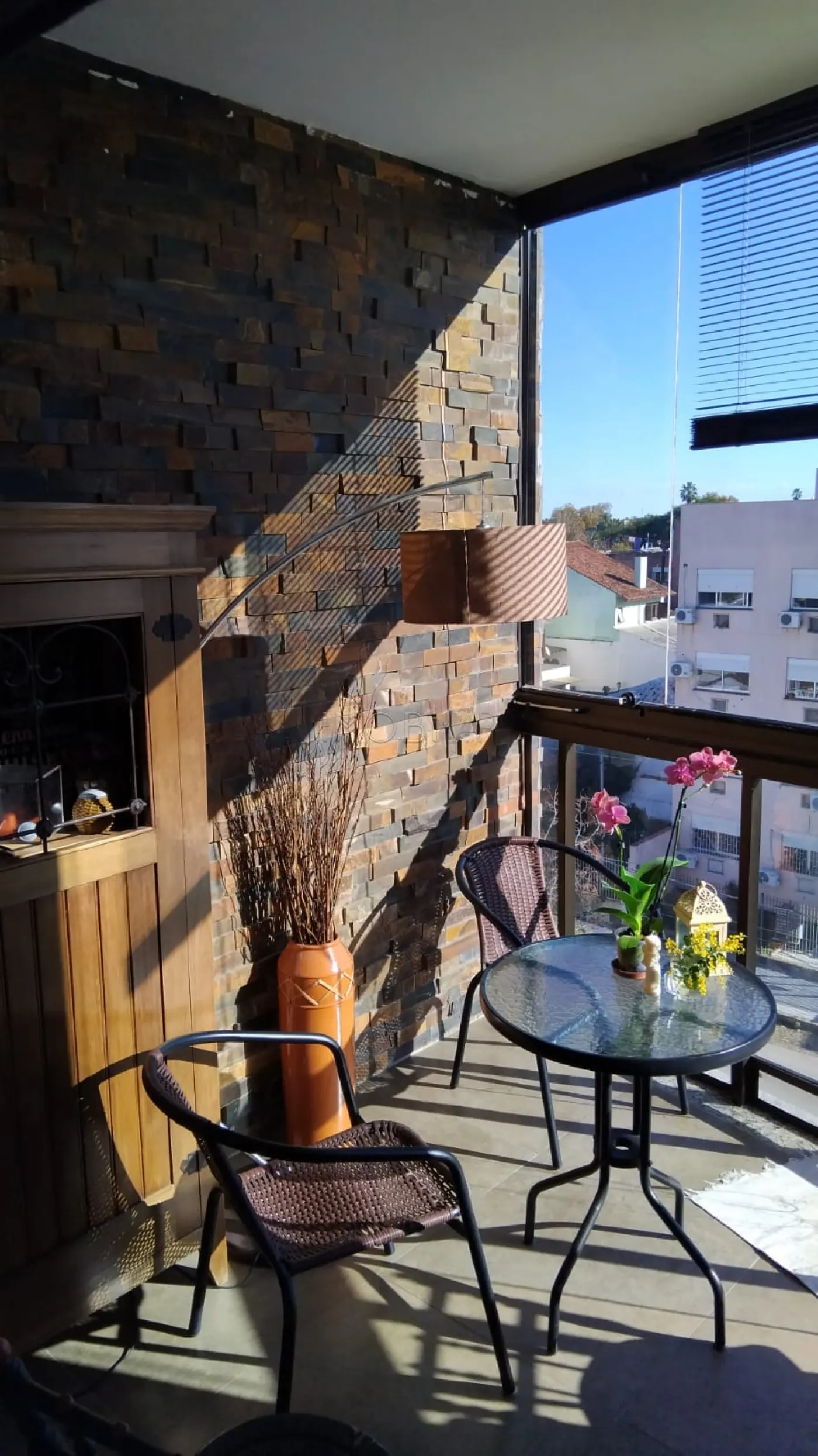 03 dorm. sendo um suite. banheiro intimo. Corredor de circulação interna. Hall de entrada. Sala de jantar. Sala de estar com lareira. Lavabo. Sacada fechada com churrasqueira. Cozinha. Lavanderia. Ap. com ambientes integrados. 02 garagnes.