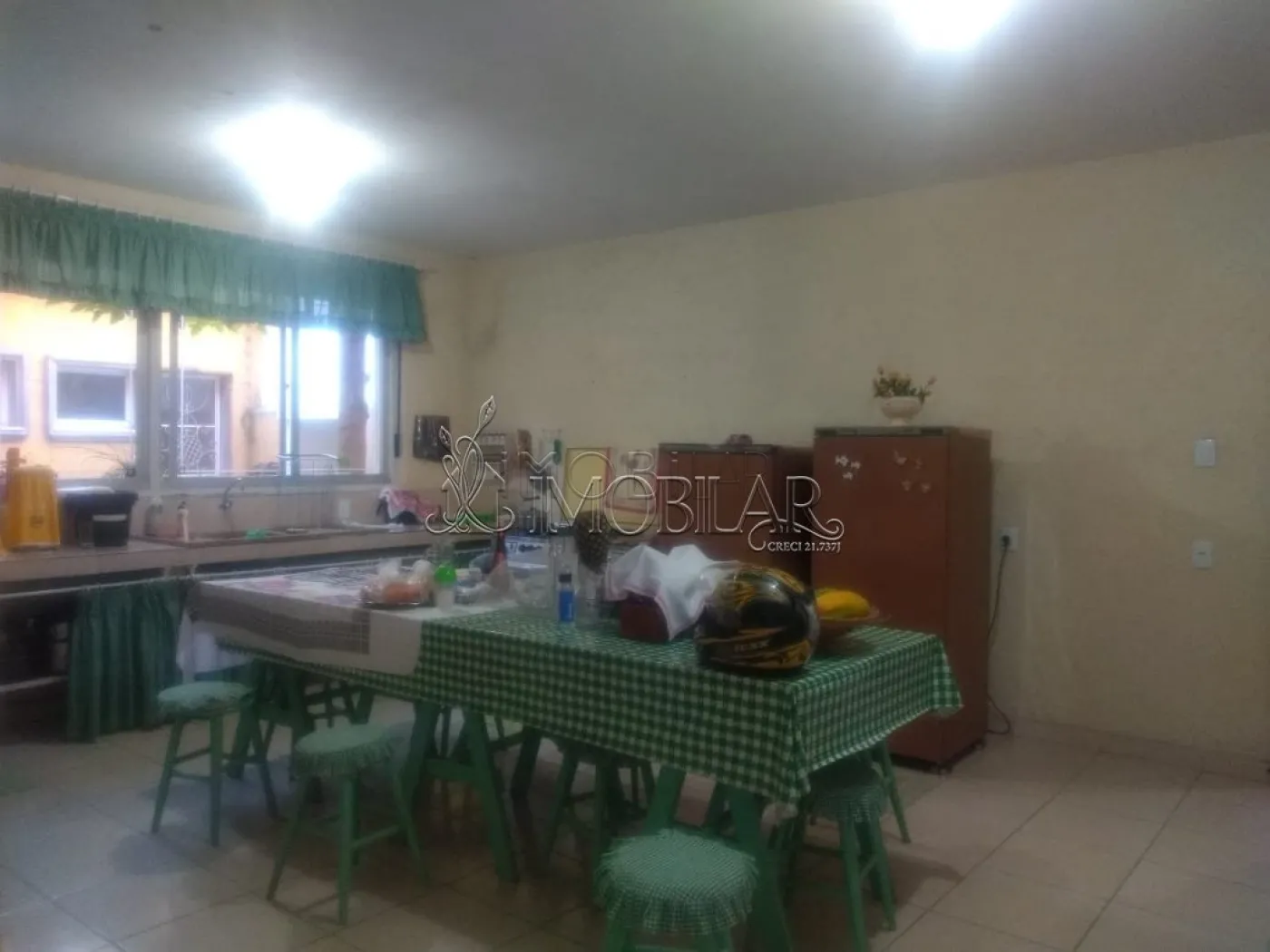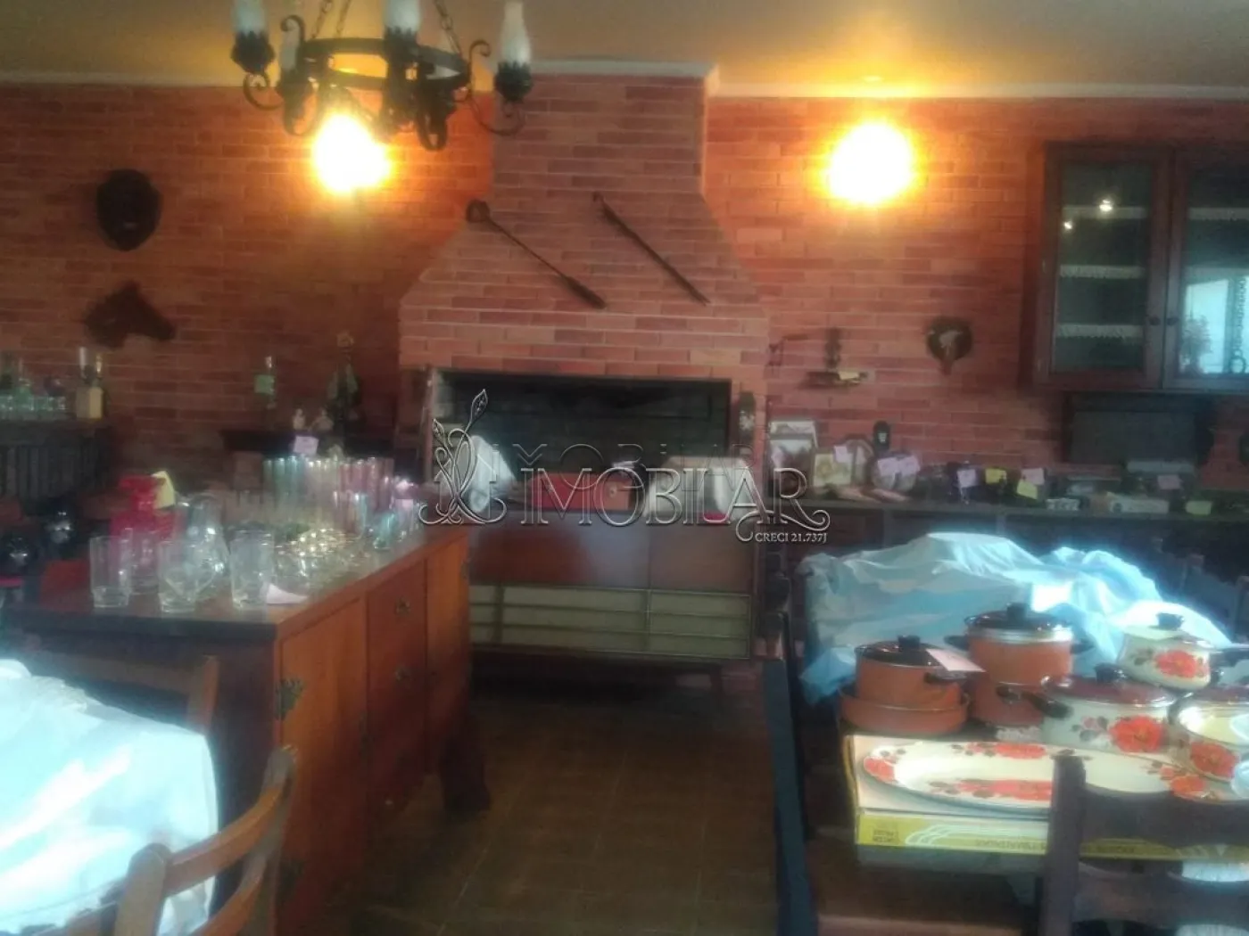 SALÃO COM LAREIRA, CHURRASQUEIRA E COZINHA.