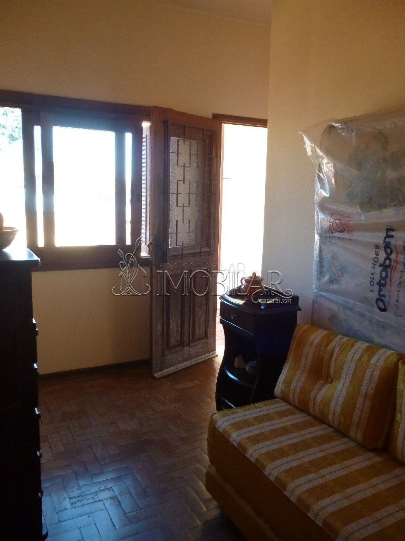 01 hall de entrada, 02 salas com lareira, 01 sala de jantar, 01 cozinha, 03 dormitórios, 01 suíte, 02 banheiros, 01 escritório, 01 lavanderia, 01 sacada, 01 dependência completa para empregada. Garagem para até 03 veículos e pátio murado com frente gradeada.