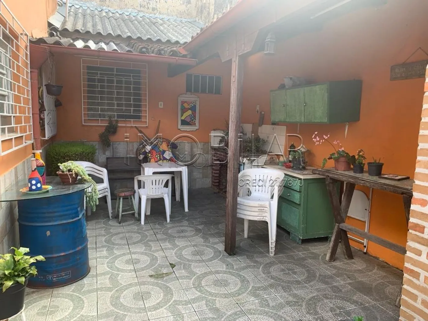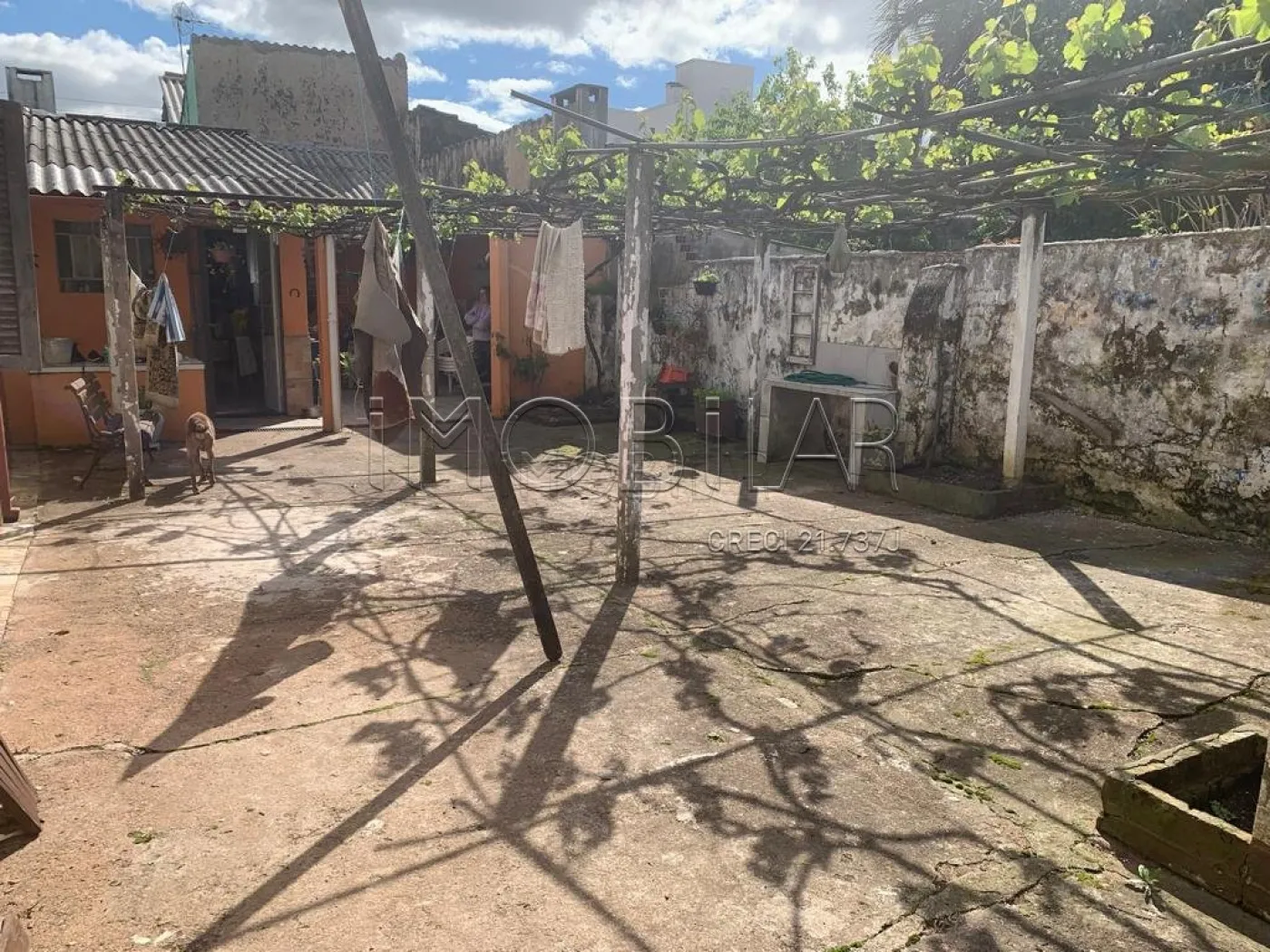 Pátio amplo murado.