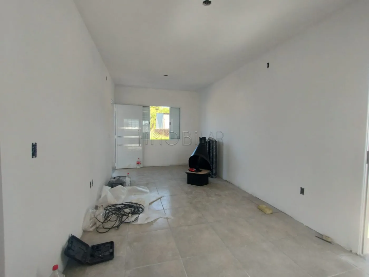 Imóvel novo Financiável com 02 Dormitórios, sala com lareira, cozinha, banheiro, pátio.