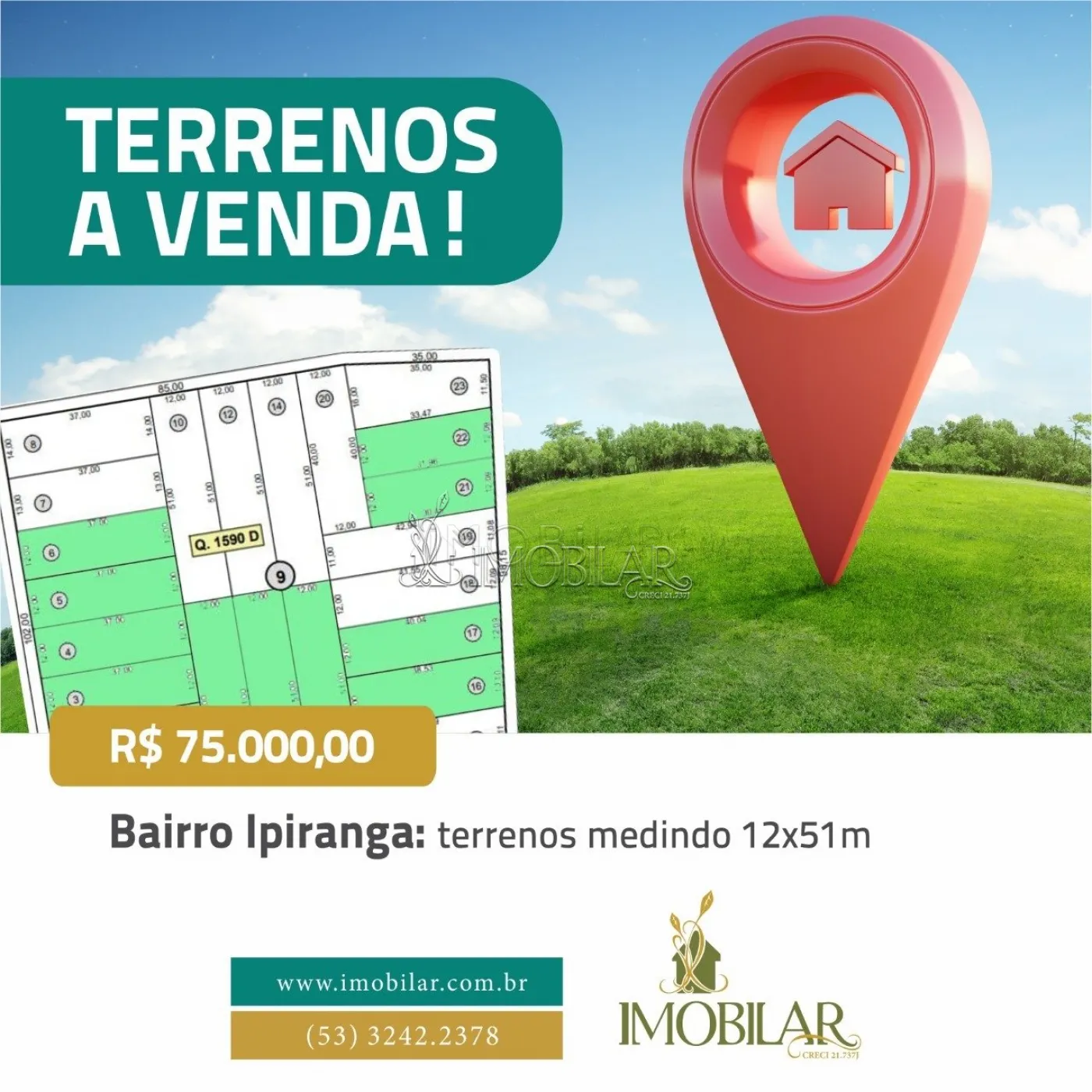 Ótima oportunidade de investimento e construção. Está sendo ofertado 04 terrenos, ambos com medidas aproximadas! Valor por lote R$ 90.000,00! Lote 16: 13,10x38,53= 504,73. Lote 17: 12,09x40,04= 516,56. Lote 21: 12,09x30,45= 368,15. Lote 22: 12,09x31,96= 386,34.